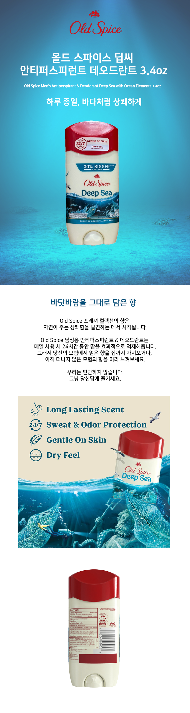 올드 스파이스 딥씨 남성용 안티퍼스피런트 데오드란트 3.4oz
